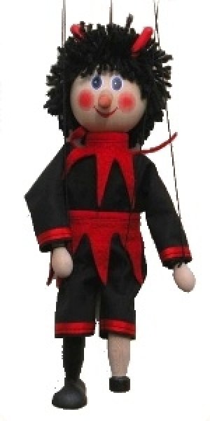 黒い服で赤い角があるチェルトは、チェコのおとぎ話に出てくるやさしくていたずら好きの悪魔。