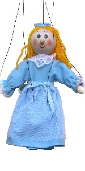 チェコのおとぎ話に出てくる妖精の女の子です。長い髪にブルーのドレス。マリオネットはチェコを代表する工芸品です。糸で手足を操ります。