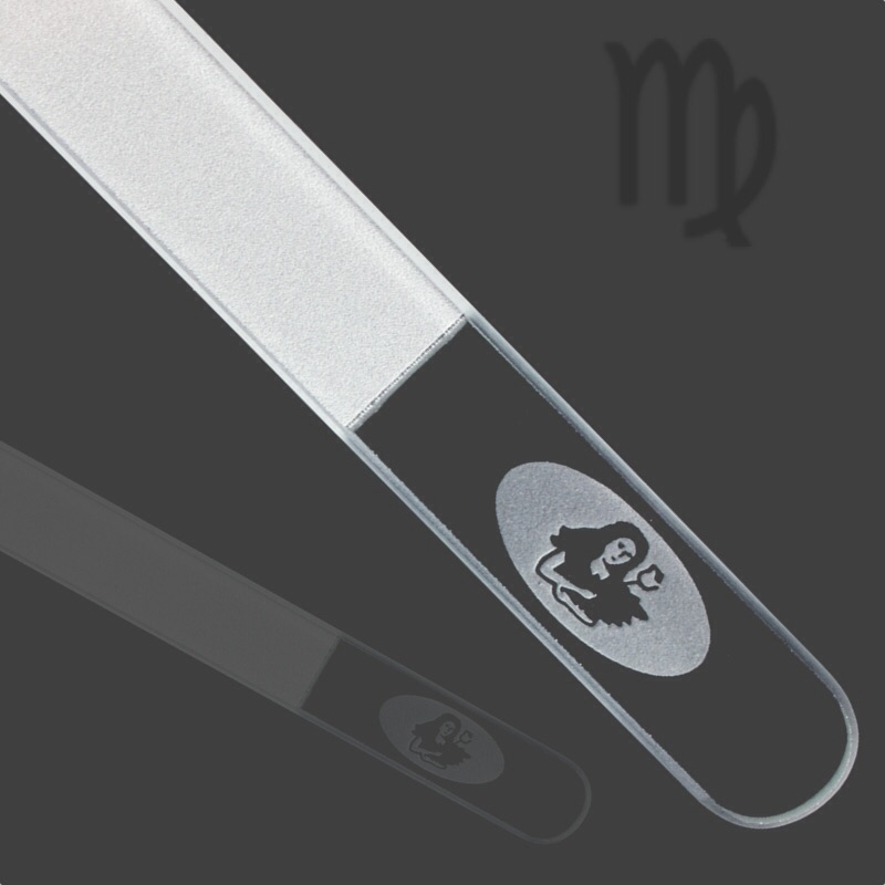誕生日の星座が刻印されたガラス爪やすり。